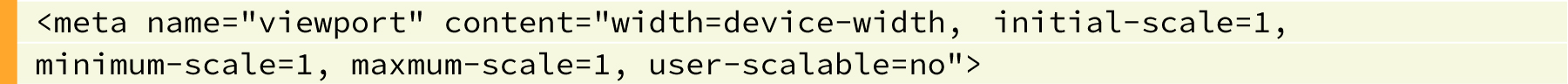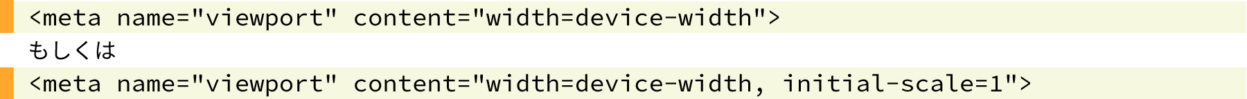 なお、何らかの事情でユーザーによるピンチイン・ピンチアウトを許可したくない場合には以下のようにviewportを記述することもあります。