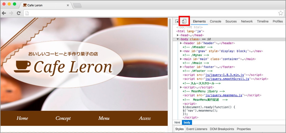 iOSやAndroidのブラウザはWebkitであり、中身はSafariやChromeに近いものになります。従って-webkit-プレフィクスの有無など、事前にある程度モバイルブラウザ側の癖に注意しながらコーディングしておけば、途中段階の表示確認についてはデスクトップ用のSafariやChomeのブラウザ幅を狭くしたりしながらの確認でもさほど問題ありません。
